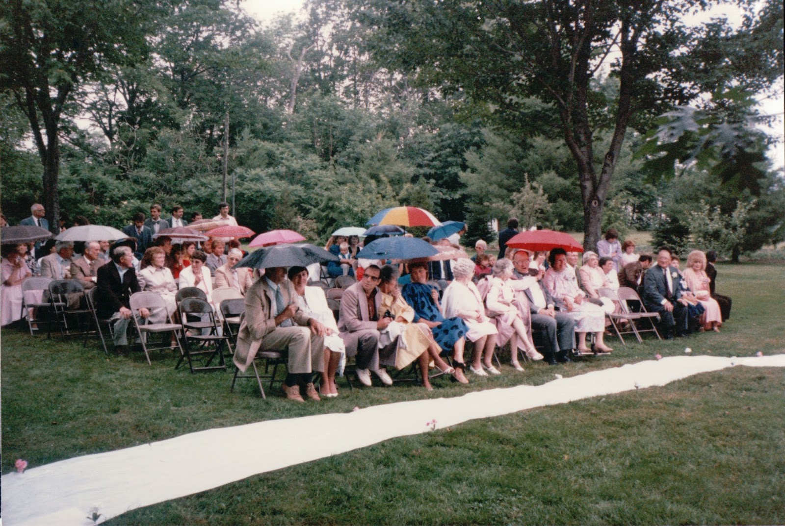 It rained, but only lightly, and there was no wind. The umbrellas in the audience added color. We had scheduled two songs, but cut one of them because the equipment was getting wet. We whispered back-and-forth that we would move the receiving line inside to the reception hall.