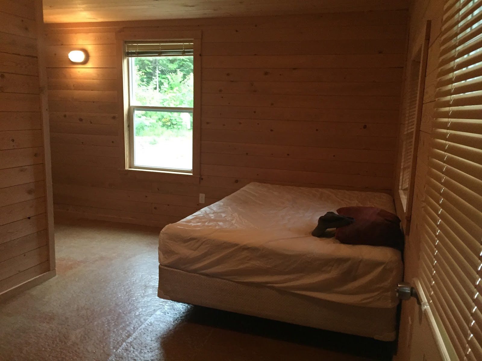 I’m always uneasy about vacation accommodations, and this was no exception. When we arrived early on Thursday afternoon, Kim unlocked the door to our cabin, made a quick inspection, and reported to me that it looked good. I decided to see for myself. There was a slight elevation difference between the driveway and the concrete porch on the cabin. Because of the soft gravel, I got stuck on that lip. But Kim gave me a boost up onto the porch. I went inside and confirmed her assessment that the cabin looked promising.