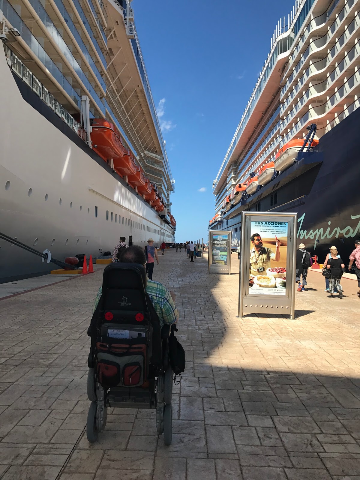 1. Good point. CocoCay would not be accessible for a regular power wheelchair, nor a manual one. But they do have beach wheelchairs with great big wheels that must be pushed. You could transfer into one of those. Cozumel was power wheelchair accessible except for the beach at the hotel. But I could've stayed near the pool at the hotel if I had been in my regular power wheelchair instead of my iBOT. Jamaica was pretty much wheelchair accessible, if you don't mind searching for curb cuts. My next post will be about the accessibility of the ship itself, which was outstanding.