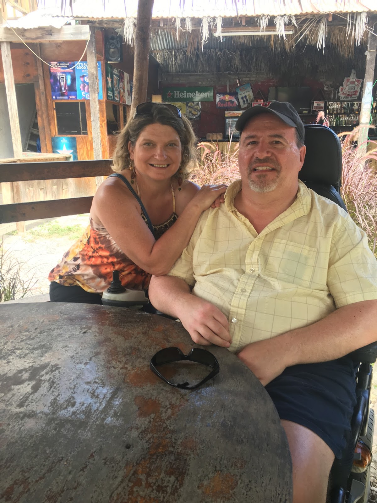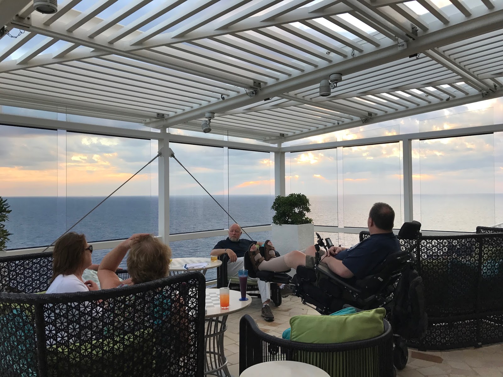 The last time we flew home from the Caribbean, the airline lost both of my power wheelchairs. That memory, and the knowledge that we had eight wheelchair transfers ahead of us, might have induced a certain dread for the trip home, but it didn’t. We had something working in our favor—first class seats on both flights. Did we spent more of Kim’s eBay earnings on such an indulgence? No. We had paid for coach, but for no apparent reason, they assigned us to first class.