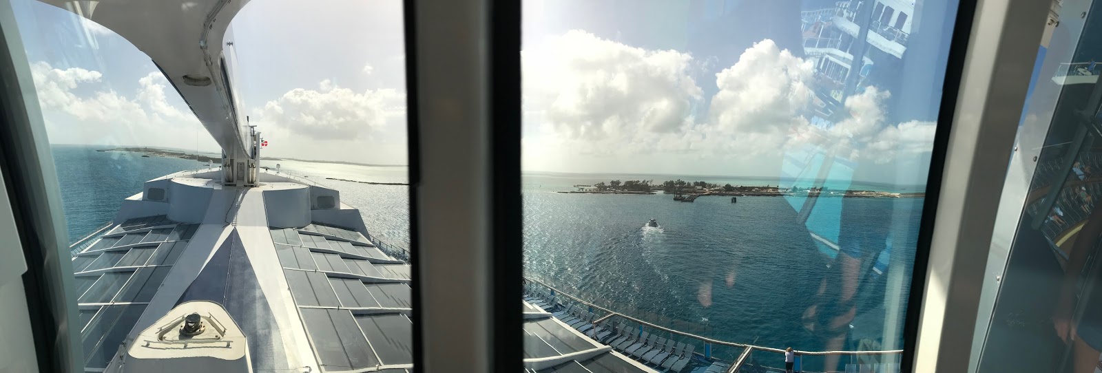 The Anthem has an attraction called the North Star. It is a capsule that rises 300 feet above sea level and allows 14 or so individuals to take in the sights. The Northstar has one spot for a wheelchair user, although the user is required to transfer to Royal Caribbean’s wheelchair, for some unknown reason. Early in the week, when we were standing in line to get Kim a ticket for the attraction (I had no interest in transferring to their wheelchair) we bumped into an employee who works on that attraction.